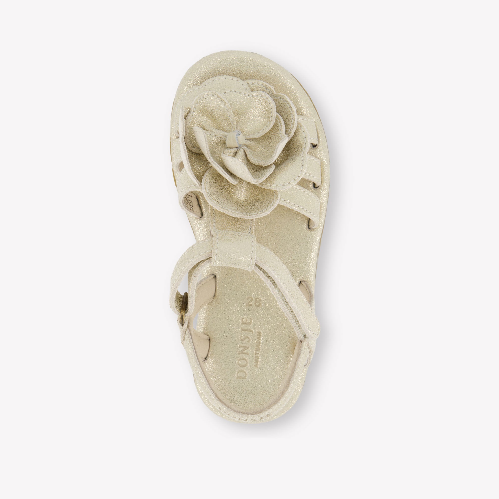 Geef haar zomerse avonturen een vleugje magie met de Iles Fields sandalen van Donsje Amsterdam. De handgemaakte bloemapplicatie in zacht suède springt sierlijk in het oog, terwijl het subtiele metallic leder zorgt voor een elegante glans 🌸. Dankzij de verstelbare sluiting blijft het sandaaltje perfect zitten – ideaal voor speelse stapjes en zonnige feestjes. Een verfijnde keuze voor stijlbewuste meisjesvoetjes.