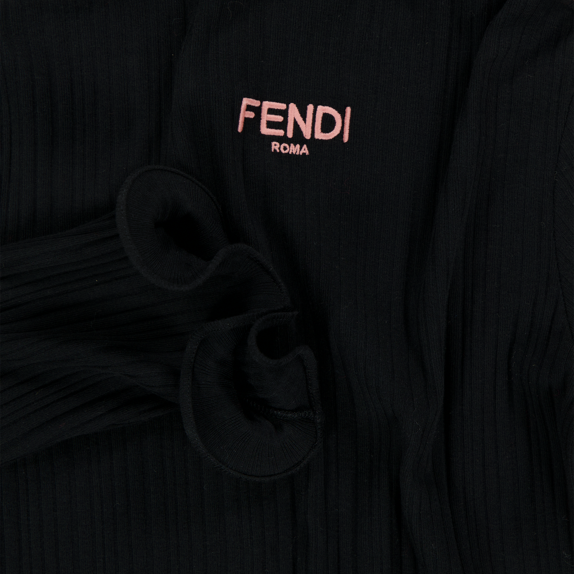 Een subtiele blikvanger met maximale elegantie — deze zwarte Fendi jurk voor meisjes straalt klasse uit in elk detail. Gemaakt van een zachte ribjersey met lichte stretch, combineert dit silhouet comfort met couture. De speelse golfrand langs de mouwen en zoom zorgt voor een verfijnde twist, terwijl het subtiele Fendi-logo op de borst een exclusieve touch geeft. Perfect voor bijzondere momenten én alledaagse stijl. ✨