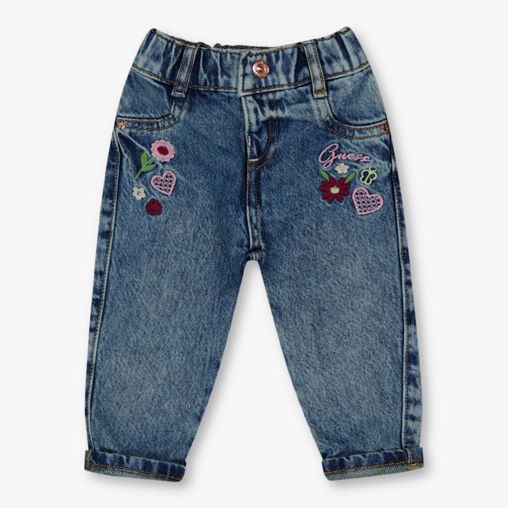 Ontdek de verfijning van de Guess Baby meisjes jeans in blauw. Deze jeans is meer dan een kledingstuk — het is een statement van stijl en comfort voor je kleintje. Gemaakt van zacht, hoogwaardig denim, biedt het de perfecte mix van draagbaarheid en luxe.