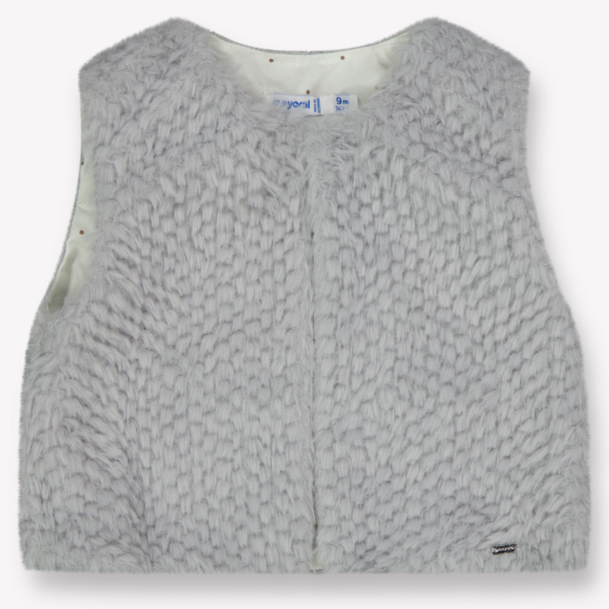 Ontdek de zachte luxe van de Mayoral baby meisjes bodywarmer in lichtgrijs. Deze verfijnde bodywarmer, gemaakt van hoogwaardig fake fur, omhult je kleintje in een warme omhelzing. 🌟