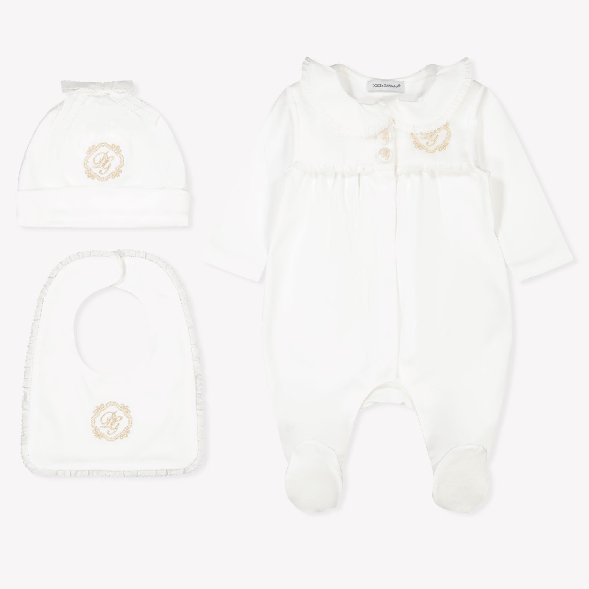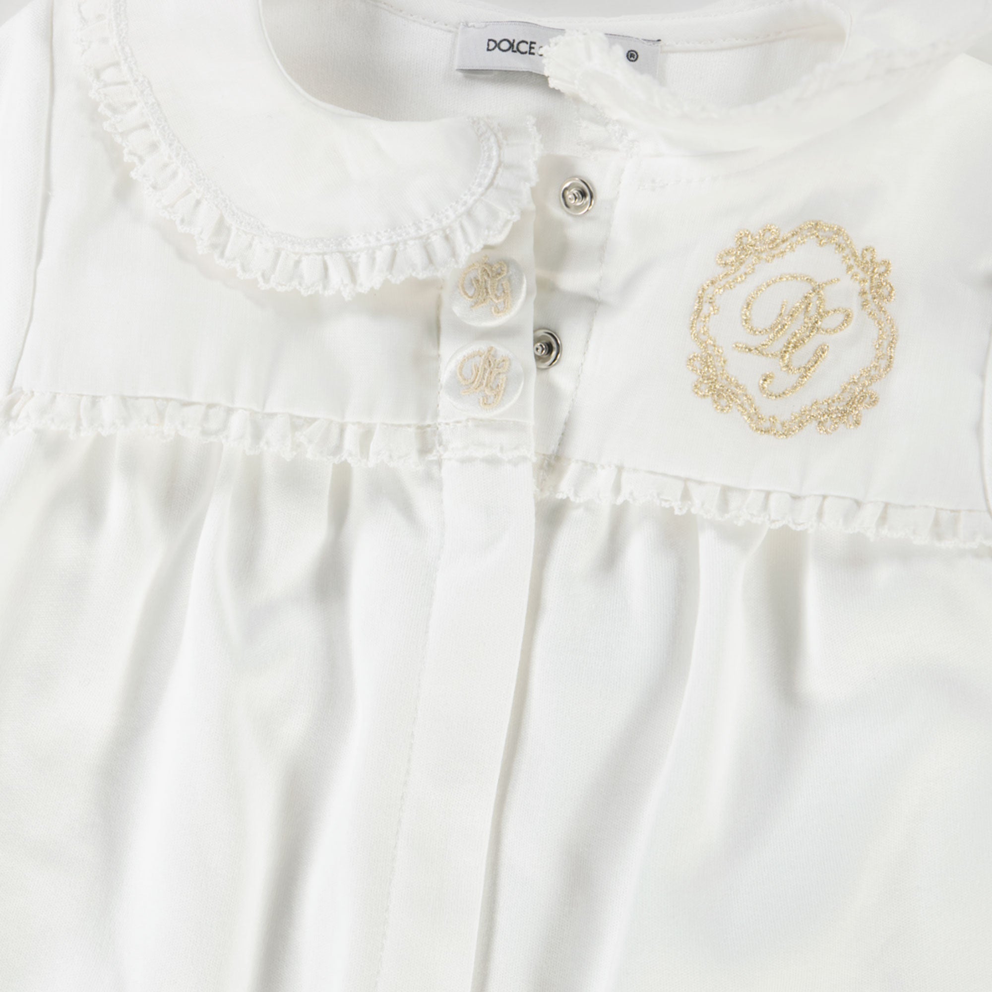 Discover the ultimate luxury for your little one with this beautiful white one Playsuit from Dolce & Gabbana. 💫 The refined design, made from the softest materials, envelops your baby in comfort and style. The subtle gold details and delicate collar add a touch of elegance to any occasion. Perfect for parents who only want the very best. This Playsuit is not just a garment, but a statement of timeless class.
