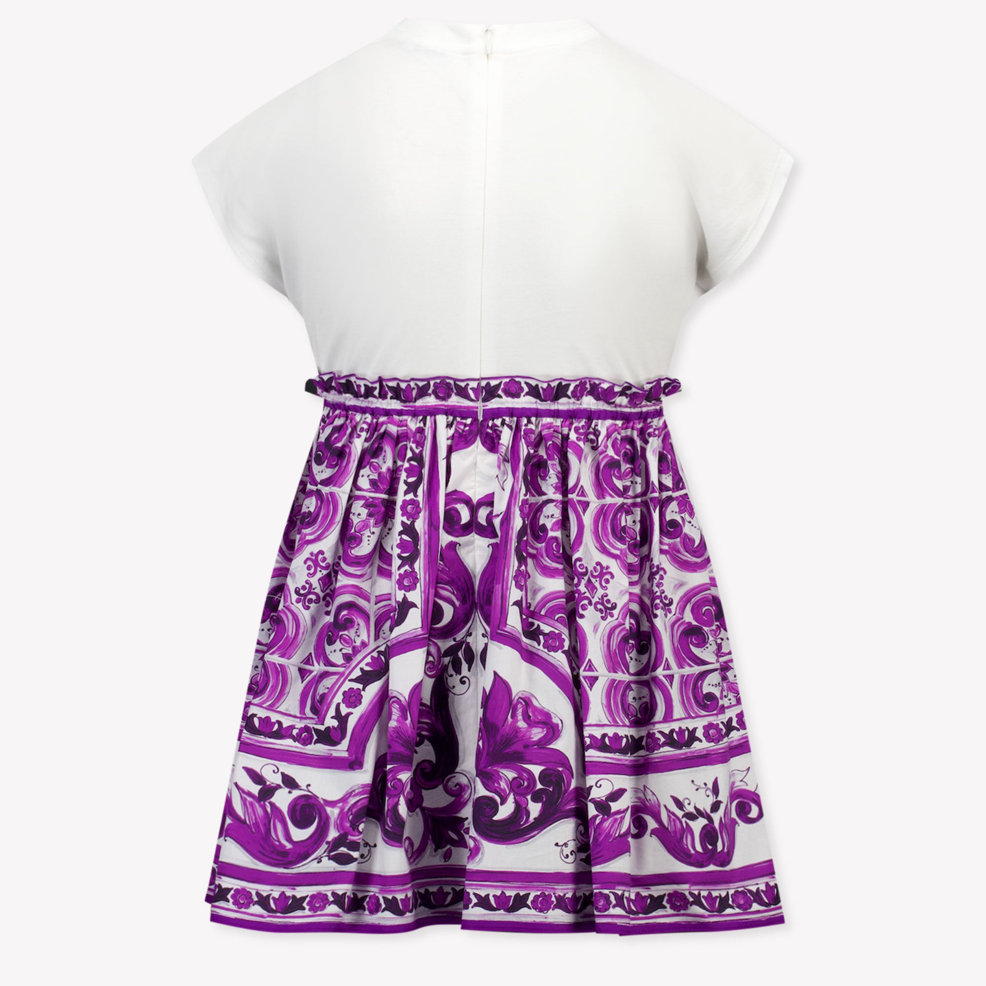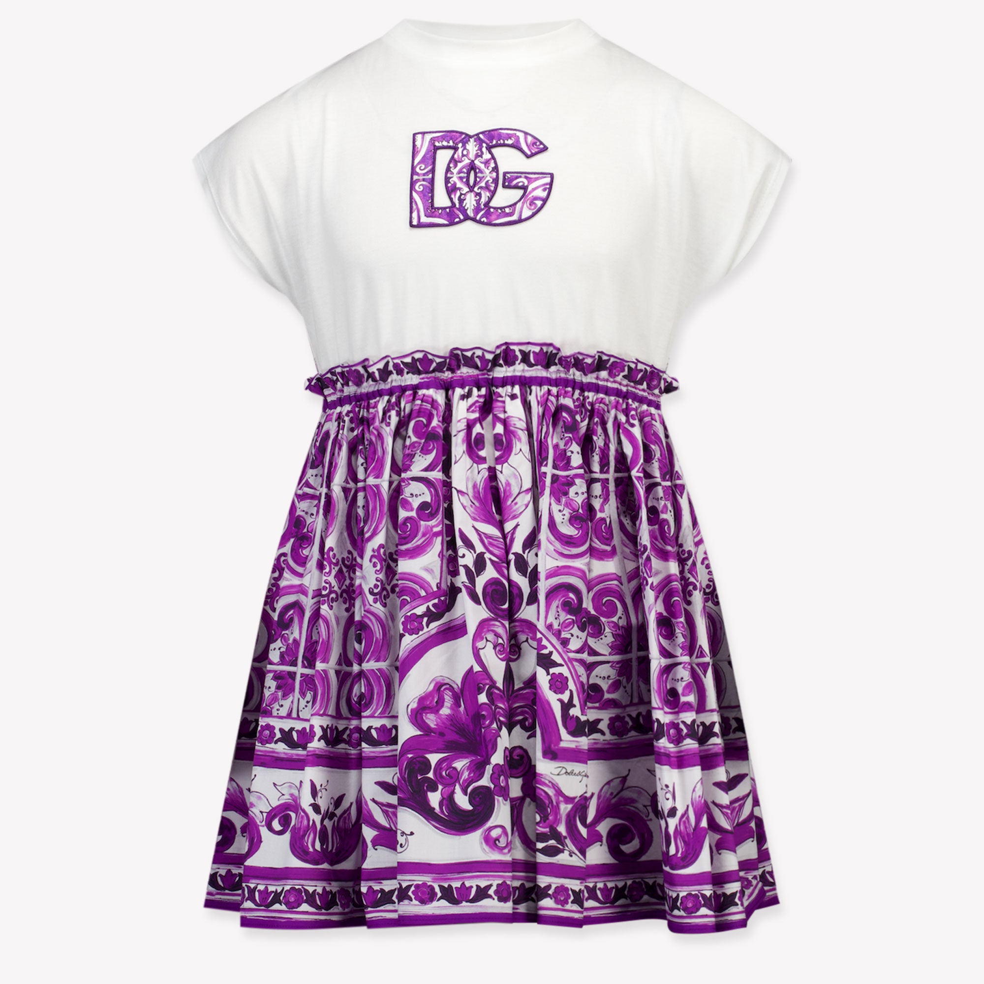 Discover the magic of luxury with this enchanting Dolce & Gabbana children's dress. 🌟 The combination of a pure white top and a majestic purple maiolica skirt exudes sophistication. The soft fabric embraces your little one in comfort, while the iconic details add a touch of Italian elegance. Perfect for special occasions, this dress creates a timeless look that will enrich any wardrobe.