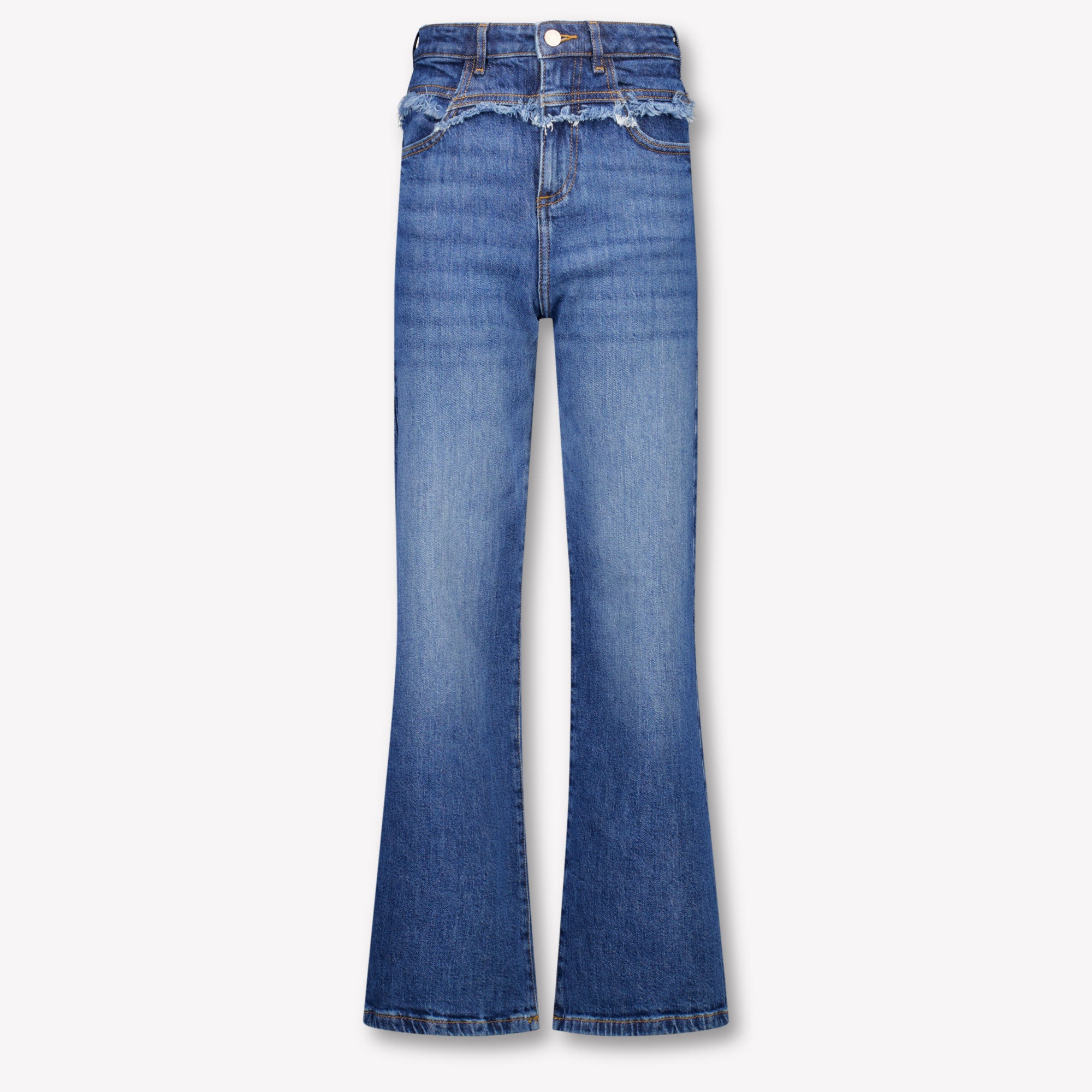 Discover the sophistication of this one Guess girls' jeans, a perfect mix of modern flair and timeless elegance. The rich blue denim exudes luxury, while the subtle frayed edges give a playful twist to the classic wideleg style. 🌟