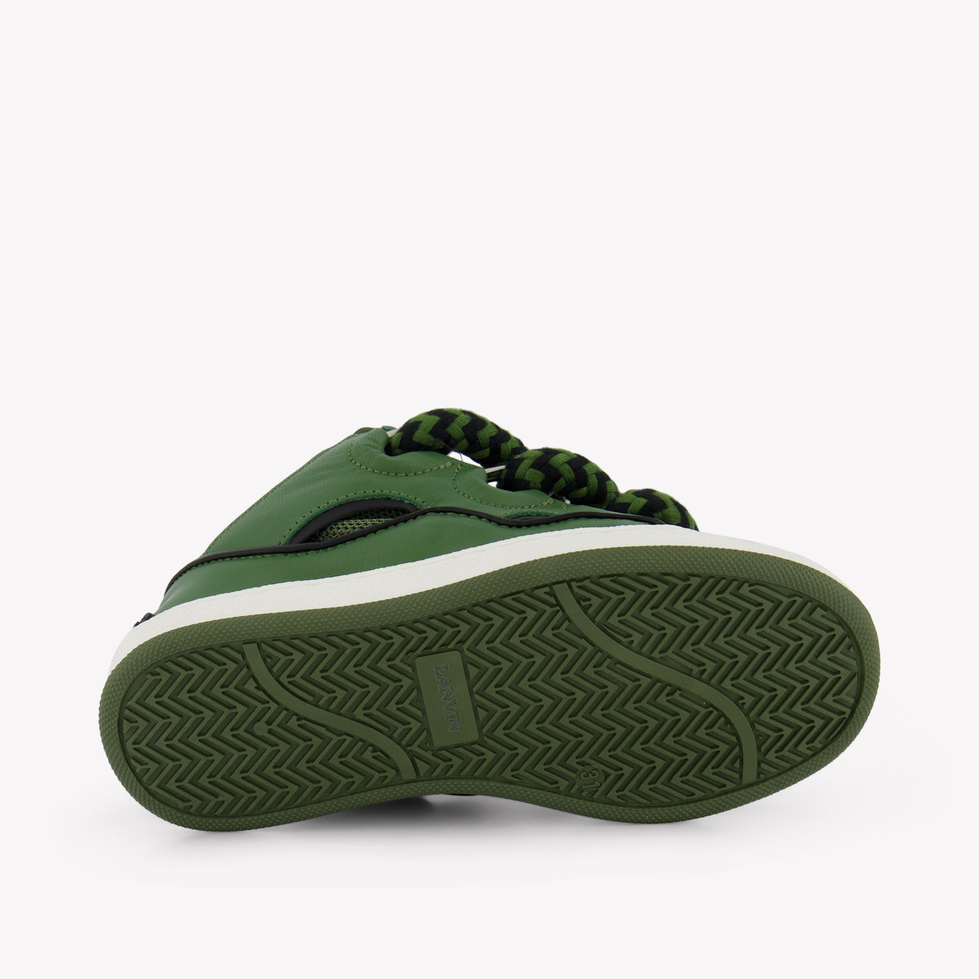 Discover the elegance of the Lanvin Girls Sneakers in Green. These refined sneakers are perfect for the young fashionista who wants to make a statement. The rich, green leather and striking laces give a playful twist to a timeless design. Comfort comes first with a soft insole and secure fit, ideal for adventurous steps. 🌿
