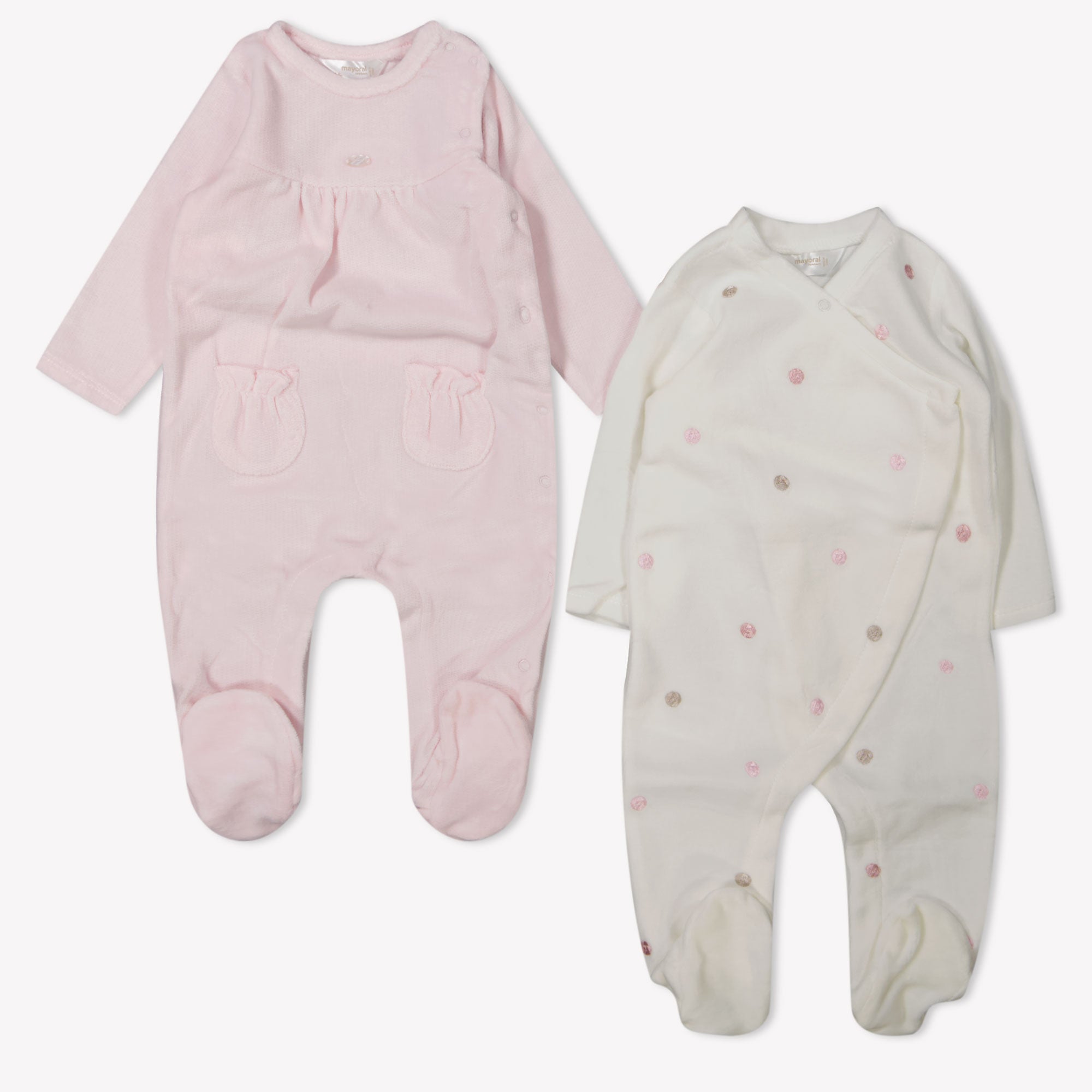 Discover the sophistication of it Mayoral Baby Girls Playsuit in Light Pink. This beautiful set, made of soft velvet, envelops your little one in ultimate luxury and comfort. 🌸 The subtle pastel color and cute details such as the delicate flowers and practical press studs make this Playsuit a timeless choice for every occasion.