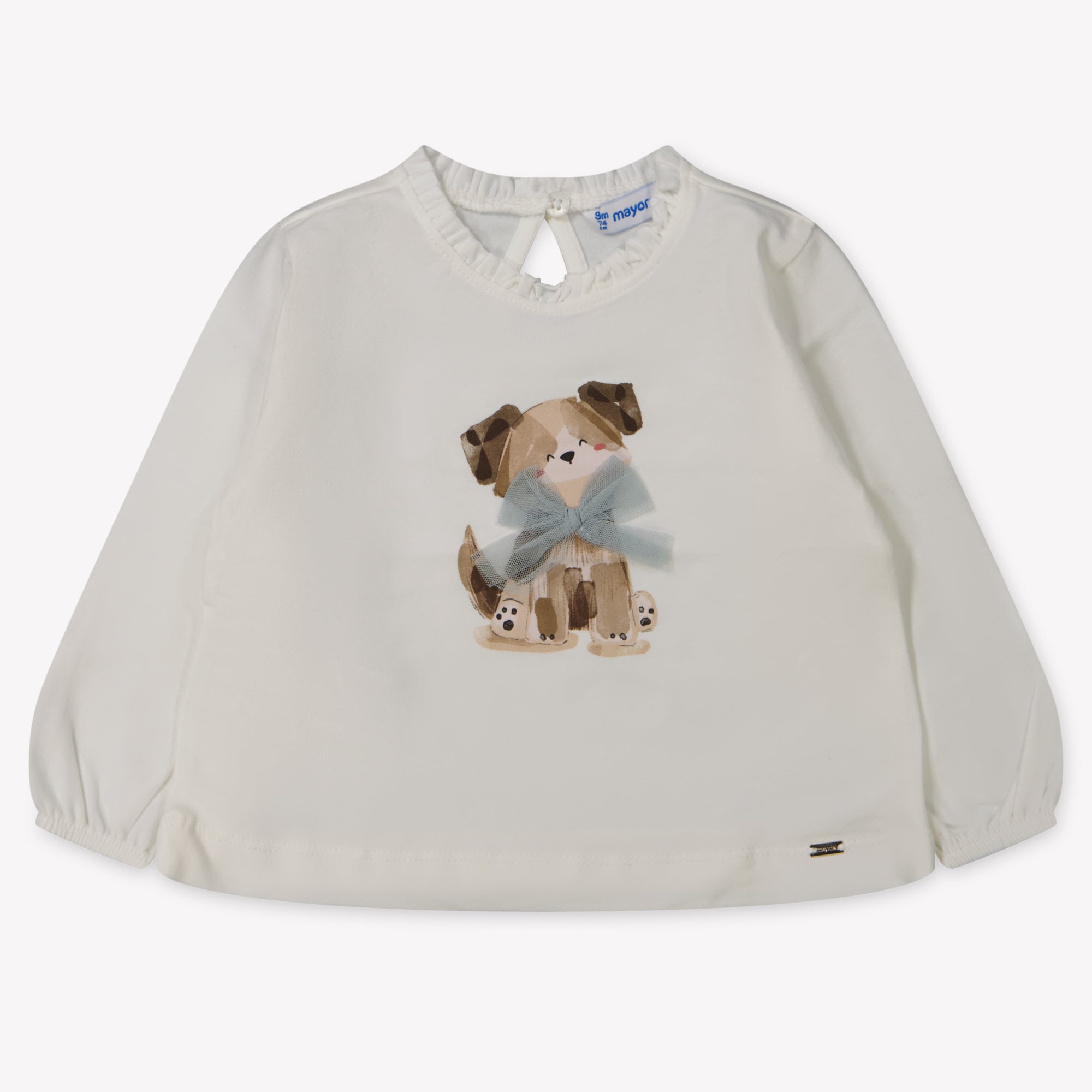 Find out Mayoral Baby Girls T-Shirt in a refined off-white shade, perfect for your little princess. Made from soft, breathable fabric that provides ultimate comfort, while the cute illustration of a dog with a delicate bow adds a playful touch. ✨