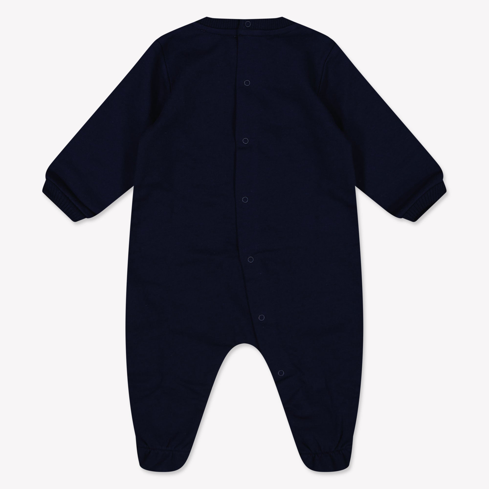 Discover the sophistication of it Moschino MNY05L LCA40 Playsuit in deep Navy. This beautiful piece, embellished with the iconic Moschino mini logo, embraces your little one with softness and style.